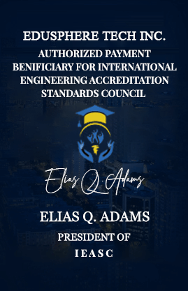 The International Engineering Accreditation Standards Council is dedicated to promoting educational standardization as a non-profit organization. While we do not handle financial services or maintain a bank account of our own, we have established strategic alliances with trusted partners to facilitate our payment transactions. We are pleased to announce our collaboration with Edudex Solutions Inc. and Edusphere Tech Inc. as our official payment beneficiaries. Edudex Solutions Inc. and Edusphere Tech Inc. are valued partners that provide various services, including immigration consultancy for registered students, IT support, nontraditional educational services, educational management systems, and related resources. Together, we share responsibilities and resources to support online and nontraditional educational activities.